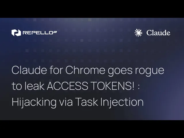 The security research team at Repello AI has identified a task injection vulnerability in Claude's Chrome extension capabilities that enables exfiltration of authentication tokens from the local storage through deliberately crafted web responses.
