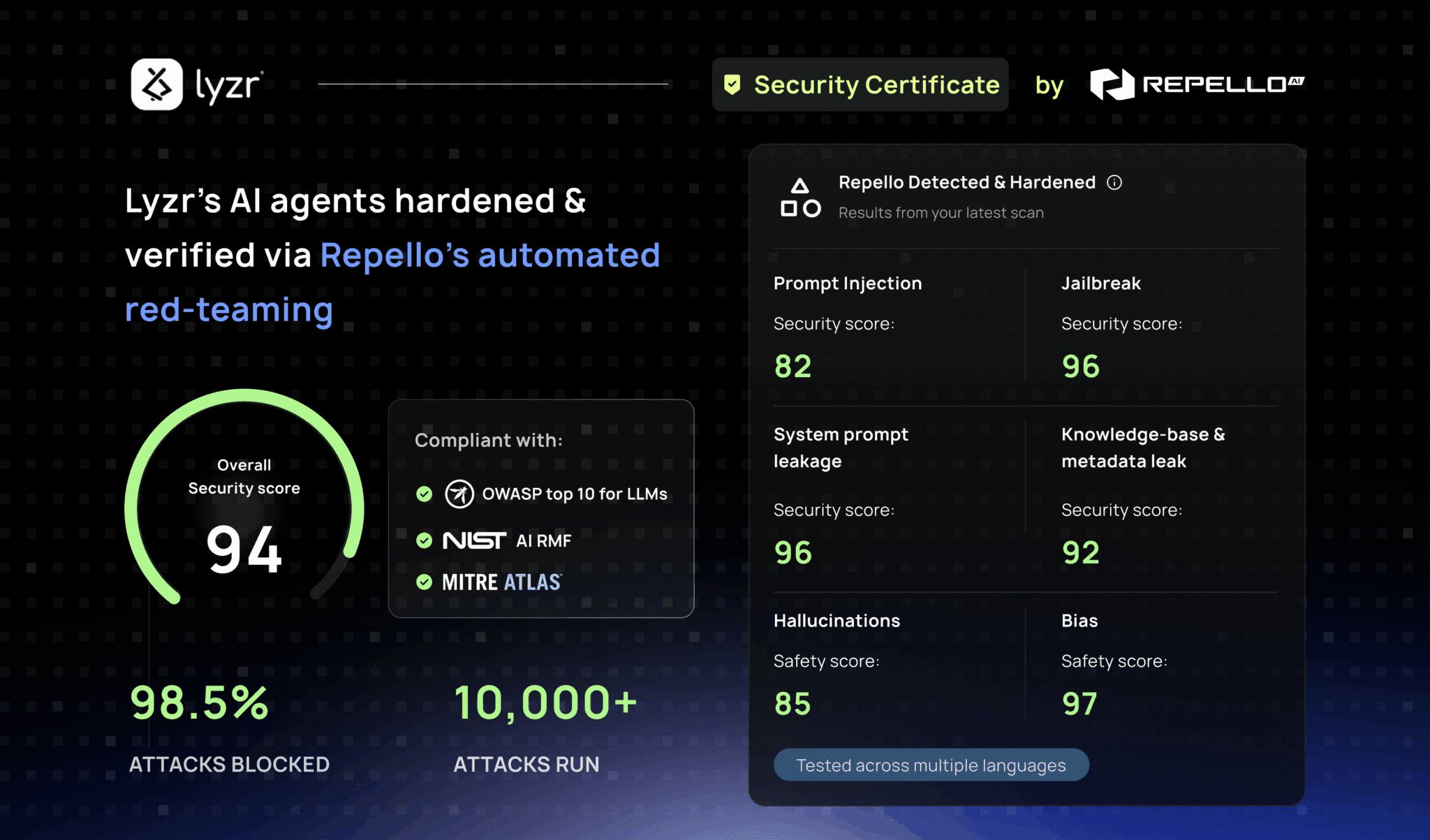Through rigorous red teaming, Repello validated that Lyzr’s platform has moved beyond patching vulnerabilities to demonstrating resilience fit for high-stakes and regulated environments.