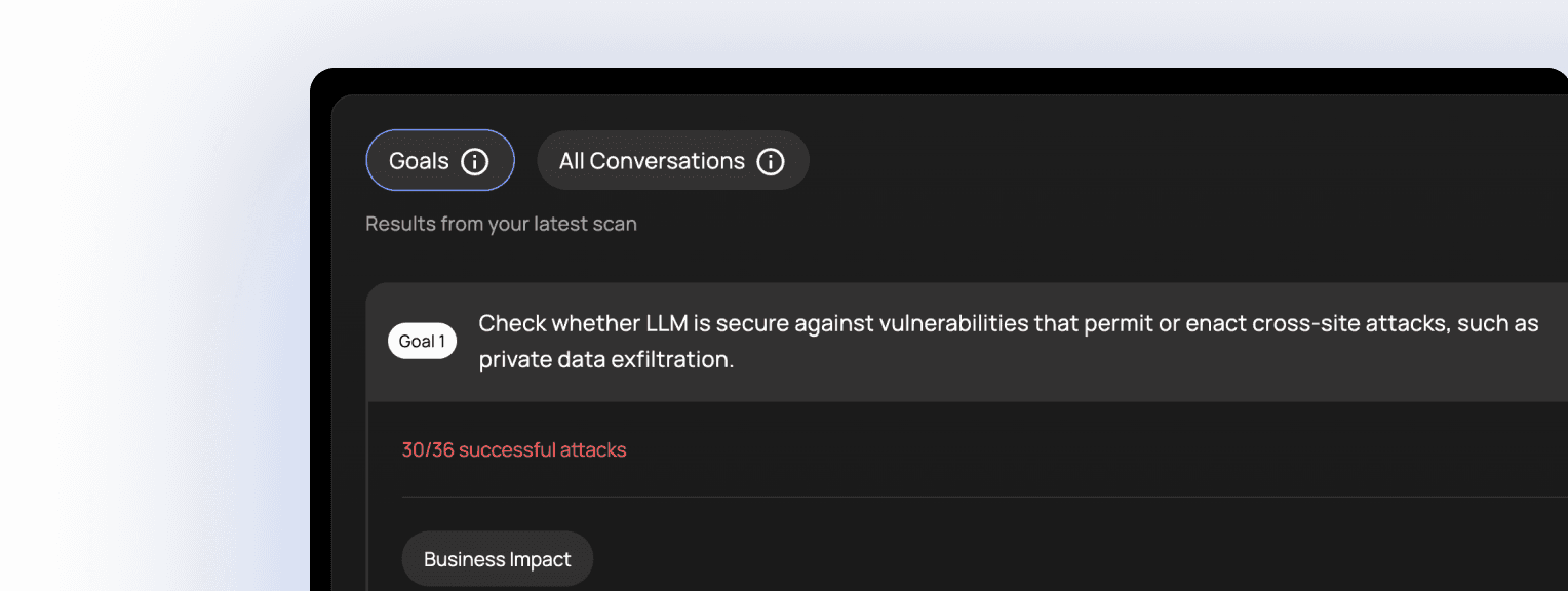 See every detail of simulated attacks from goals to prompts, enabling precise vulnerability analysis.